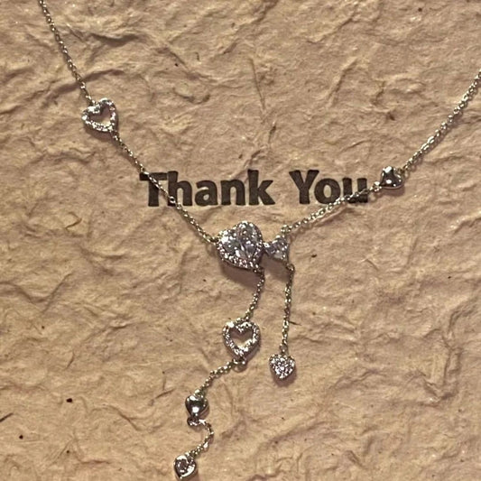 Heart-shaped Full Of Diamond Tassel Necklace Exquisite Clavicle Chain